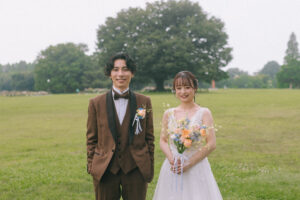 爽やかな草原にぴったりの素敵なお二人の笑顔。