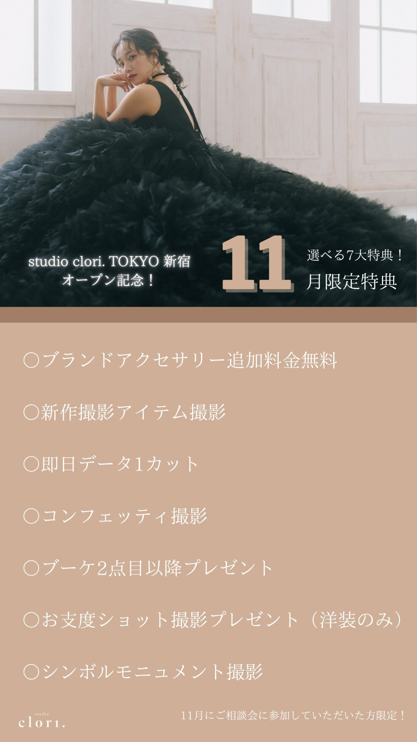 ・ウエディングフォト体感ができるスタジオ見学ツアー ・新作ドレスも実際に確認できるドレスショップ見学 ・様々なプランの中からお二人にぴったりなプランを提案できるプラン相談会 など