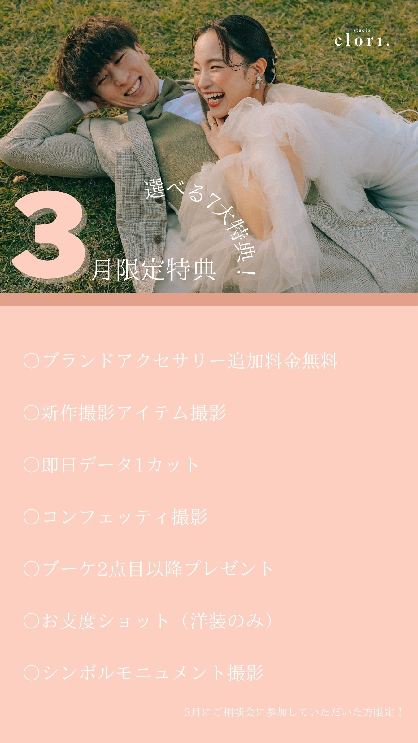 たくさんのコンテンツの中からお二人にぴったりなものを専属のプランナーがご提案 ウエディングフォトのすべてがわかる相談会にてなんでもご相談くださいませ!