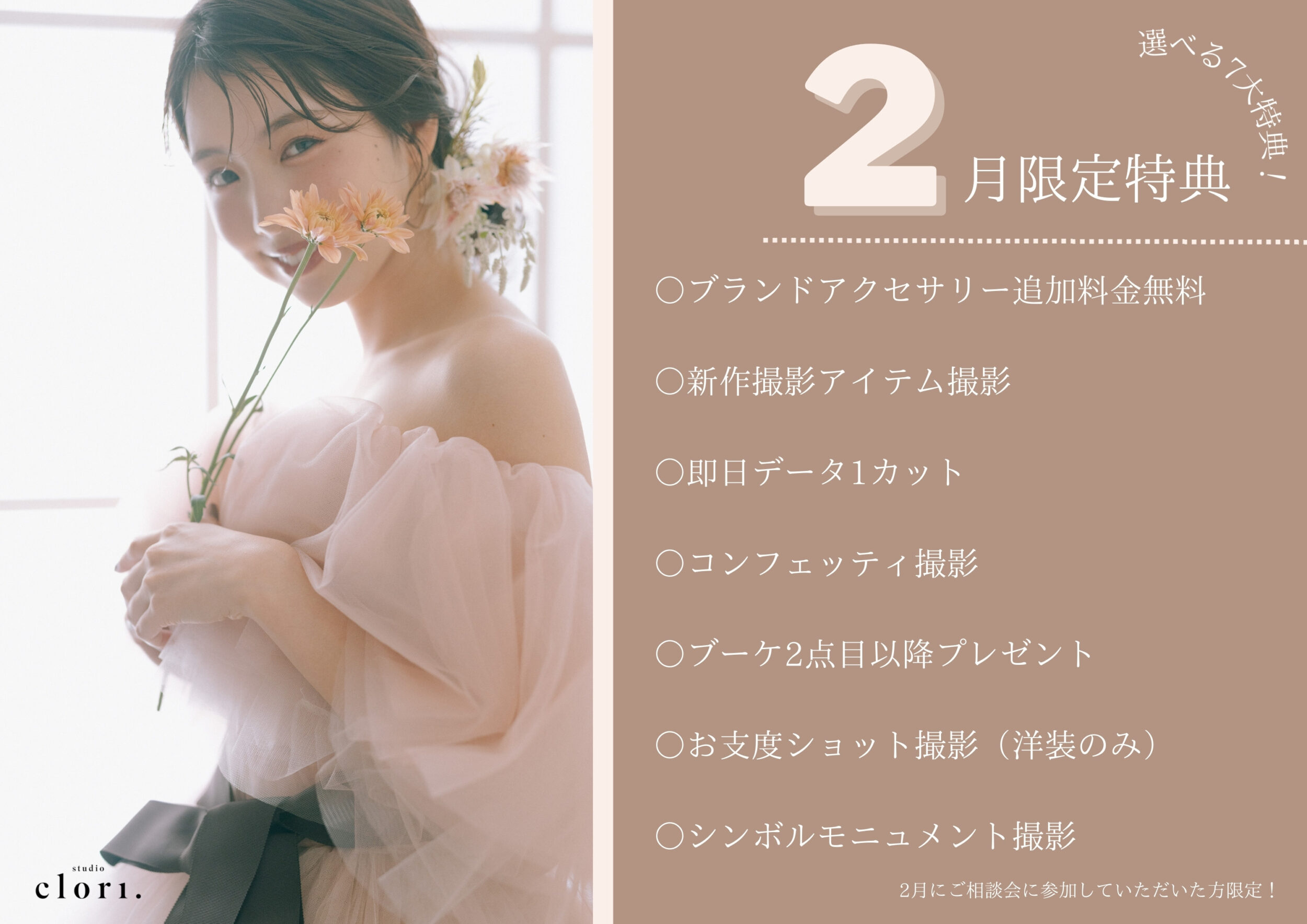【大人気特典付きフェア‼︎】2/1~2/28までにご相談会に参加した方限定!選べる7大特典!