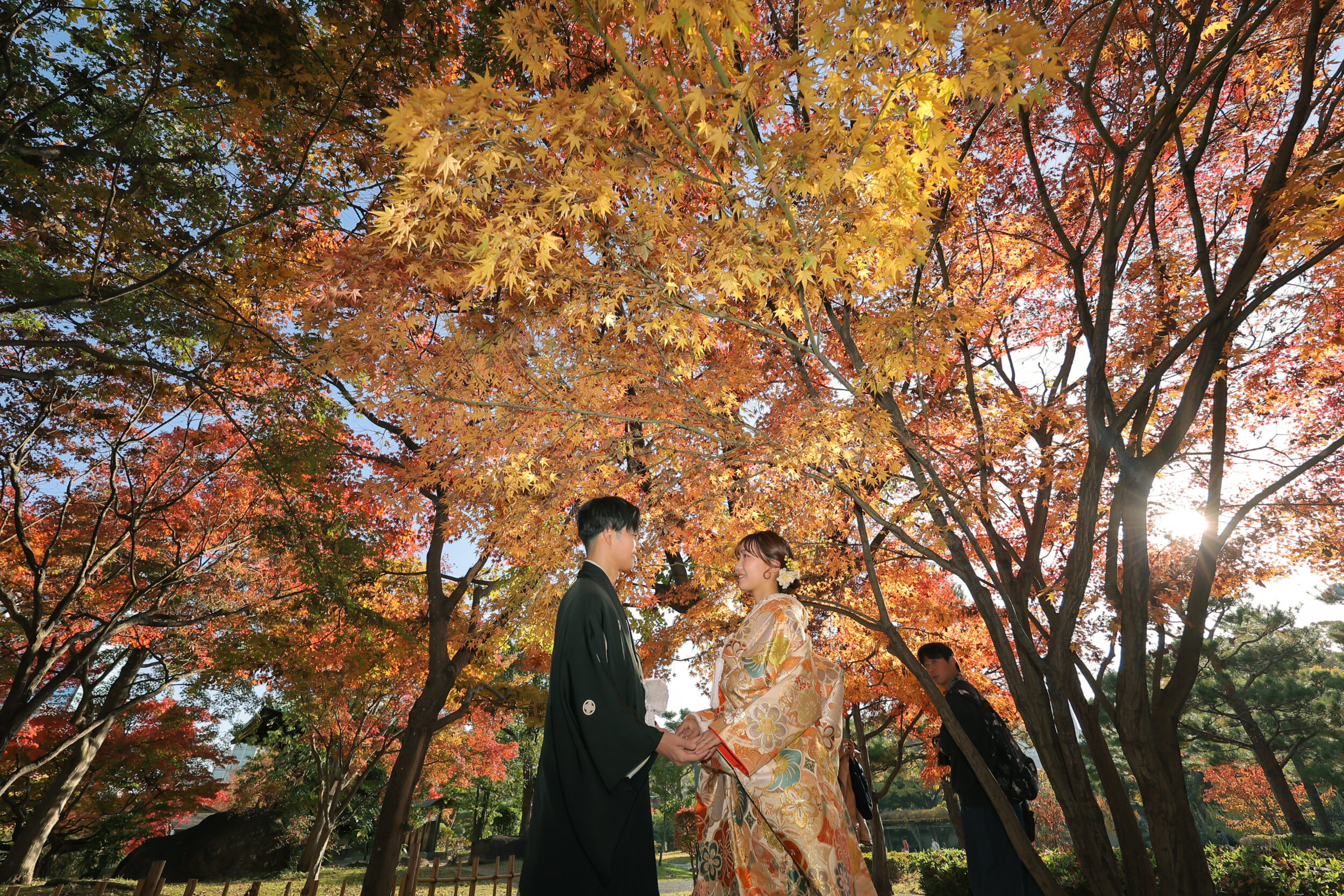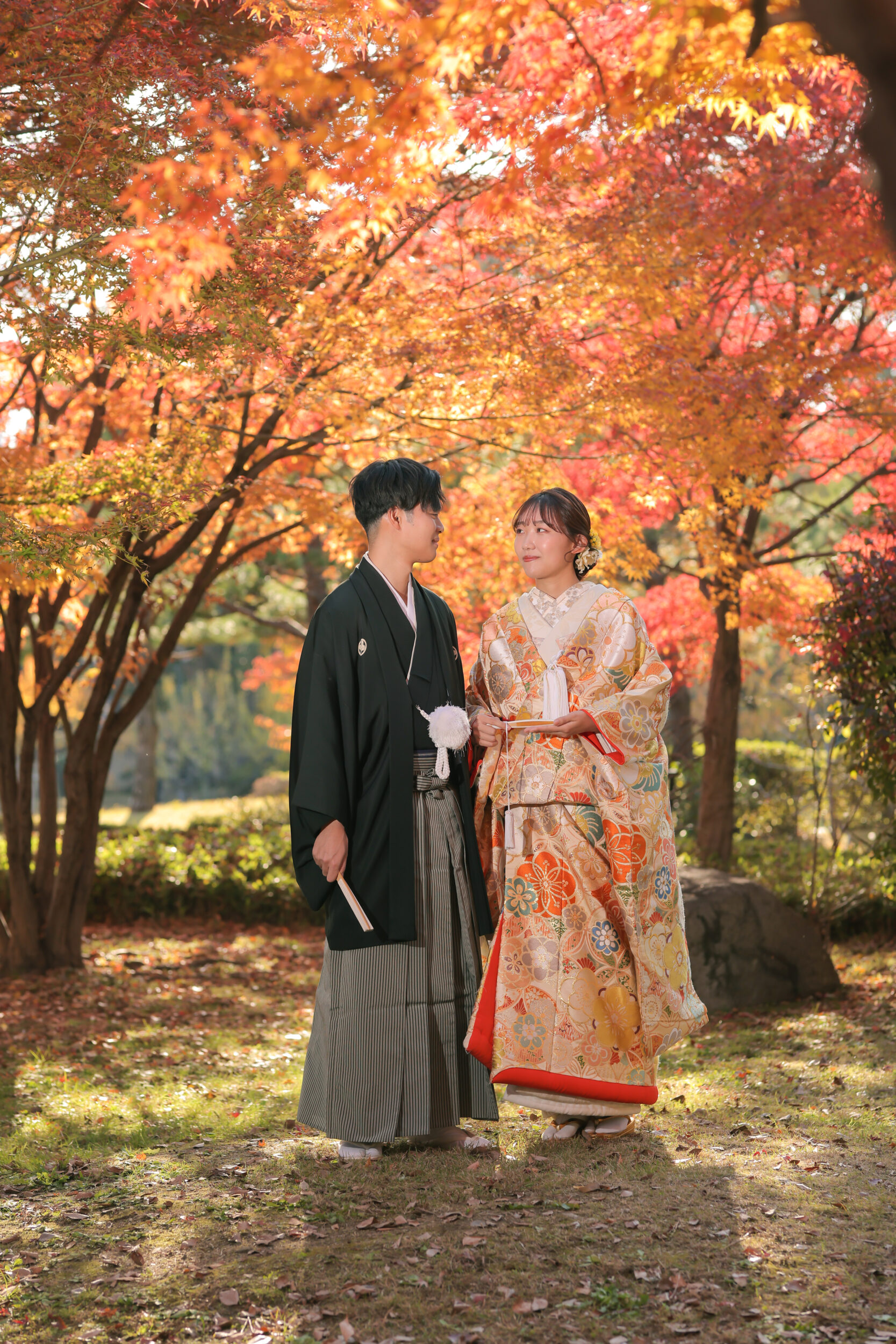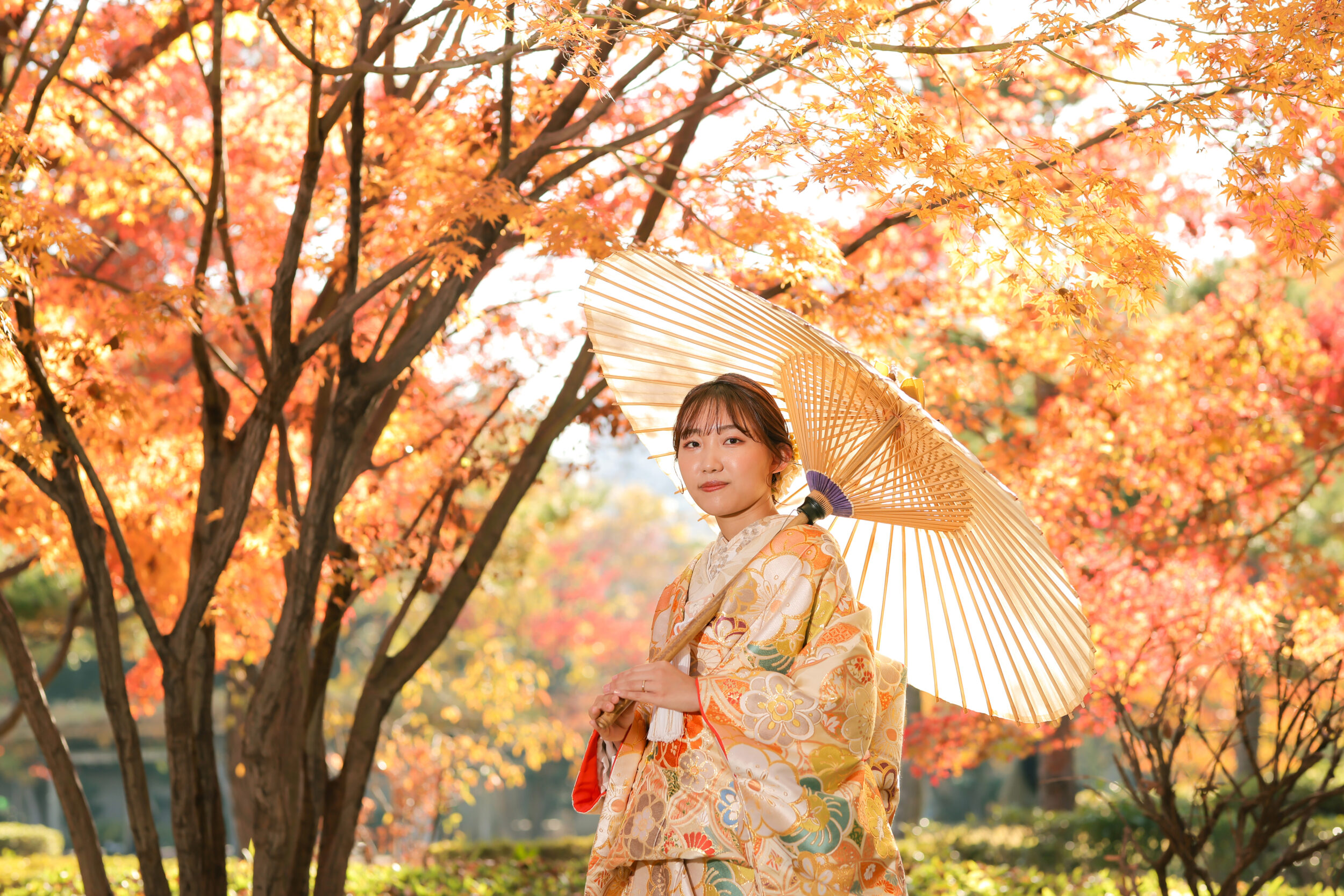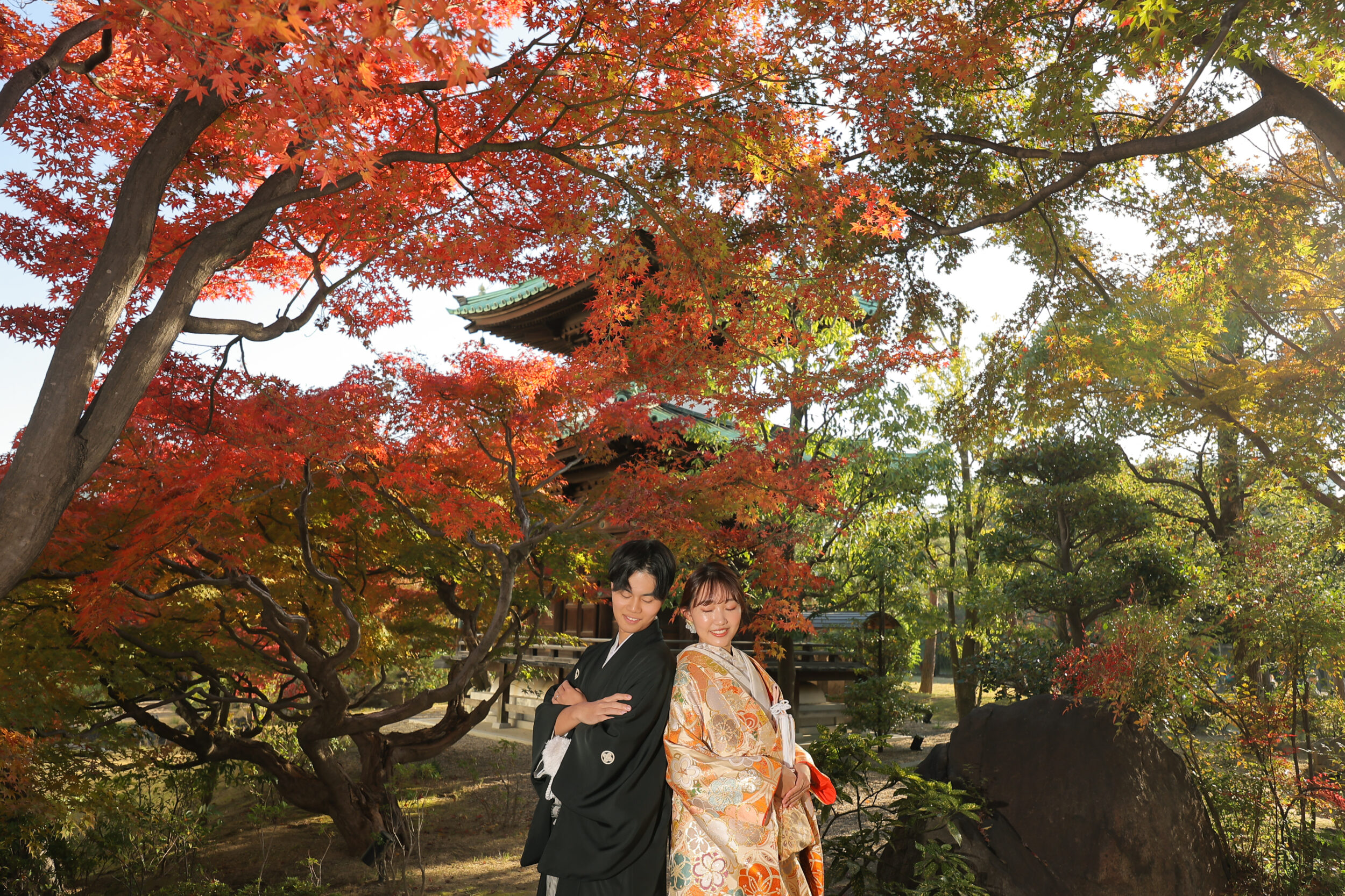 紅葉ならではの季節感じる背景も素敵です。